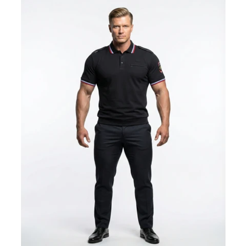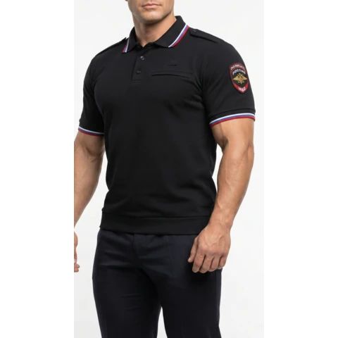 Футболка ПОЛО МВД нового образца (приказ 777), выполнена из трикотажного пике качества "компакт пенье" плотностью 240 г\м2. Из-за высокого содержания хлопка (95%) ткань является "дышащей" (в отличии от синтетических аналогов), а добавление лайкры 5% не позволяет изделию выцветать и растягивается во время эксплуатации и после стирок. Футболка прямого силуэта с втачными рукавами.