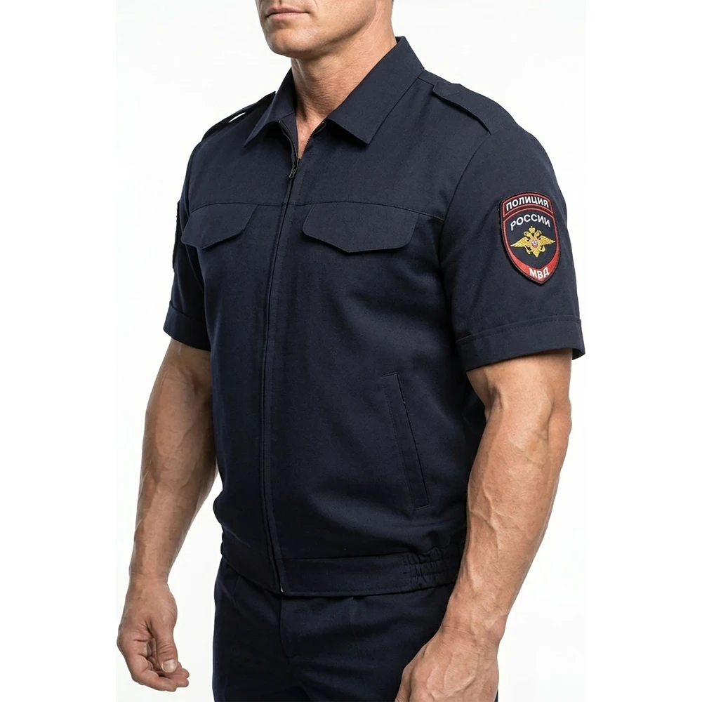 Костюм полиции МВД офисный с коротким рукавом, модель по приказу 777. Выполнен по улучшенным лекалам, в строгом соответствии с ГОСТ РФ. Благодаря этому костюм идеально садится по фигуре и очень комфортен в повседневной эксплуатации. Использование сертифицированной фурнитуры значительно повышают эксплуатационные сроки изделия. Применение автоматического оборудования при отшиве погон, фигурных клапанов карманов, прорезных карманов, позволяет держать высокое качество пошива и сохранять строгую симметрию элементов на фасаде изделия, что делает костюм презентабельным и позволяет находится всегда в "ОТЛИЧНОЙ ФОРМЕ"